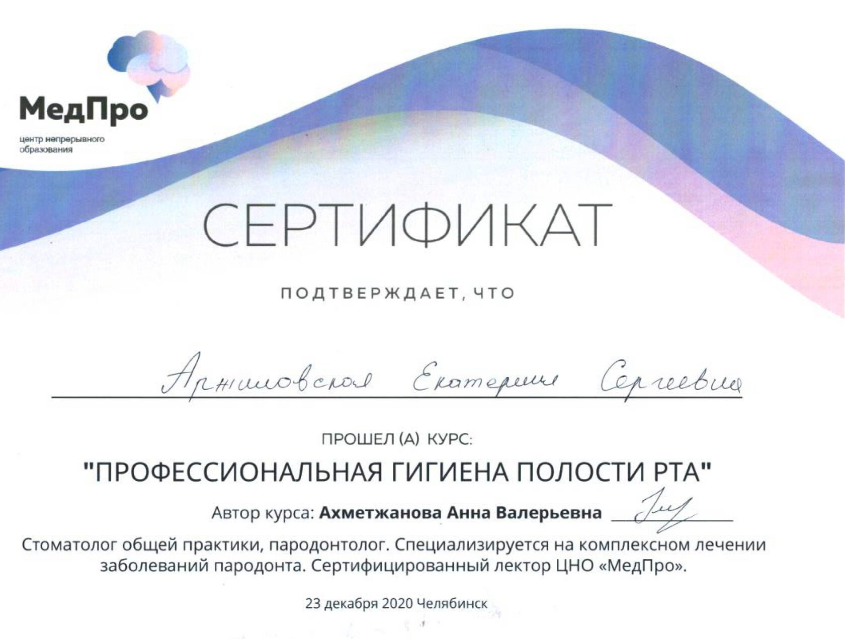 2020г. — «Профессиональная гигиена полости рта», А.В. Ахметжанова, г. Челябинск