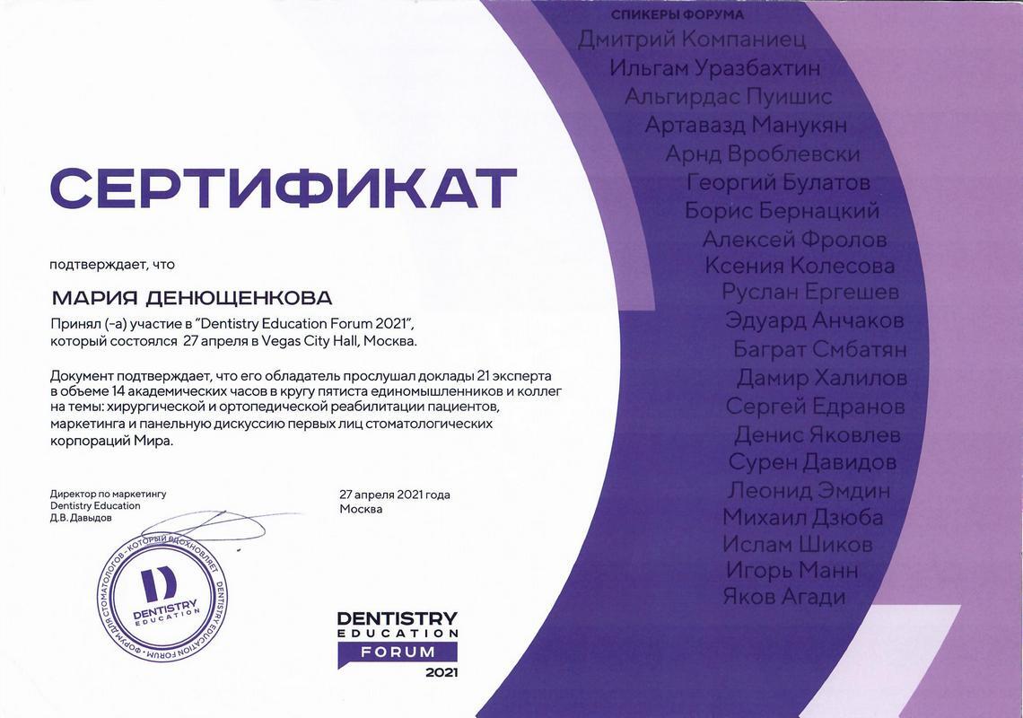 • 2021г. — Dentistry Education Forum 2021