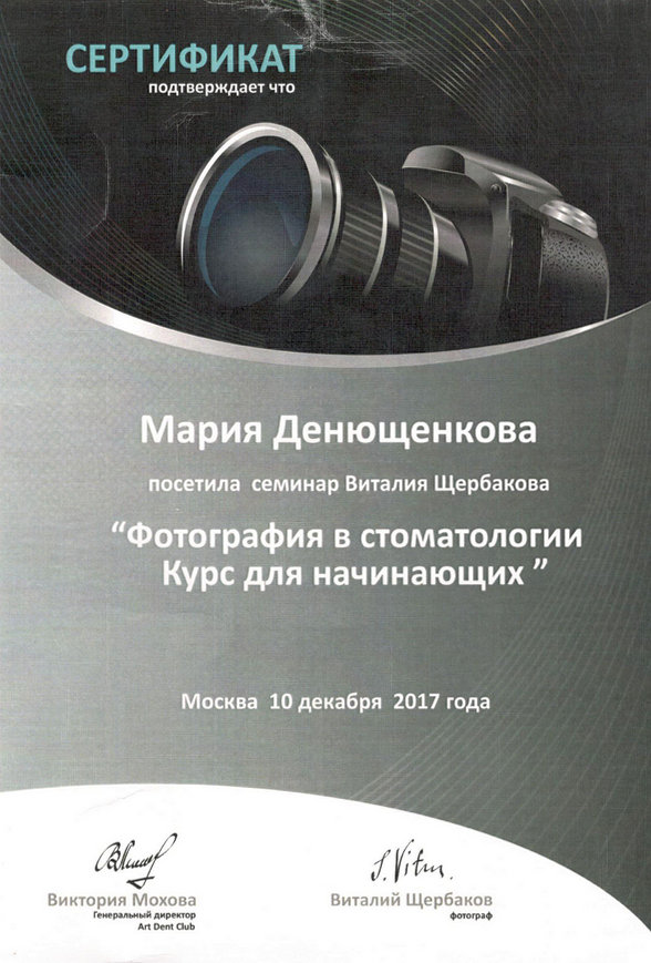 • 2017г. — «Фотография в стоматологии». Лектор: Виталий Щербаков