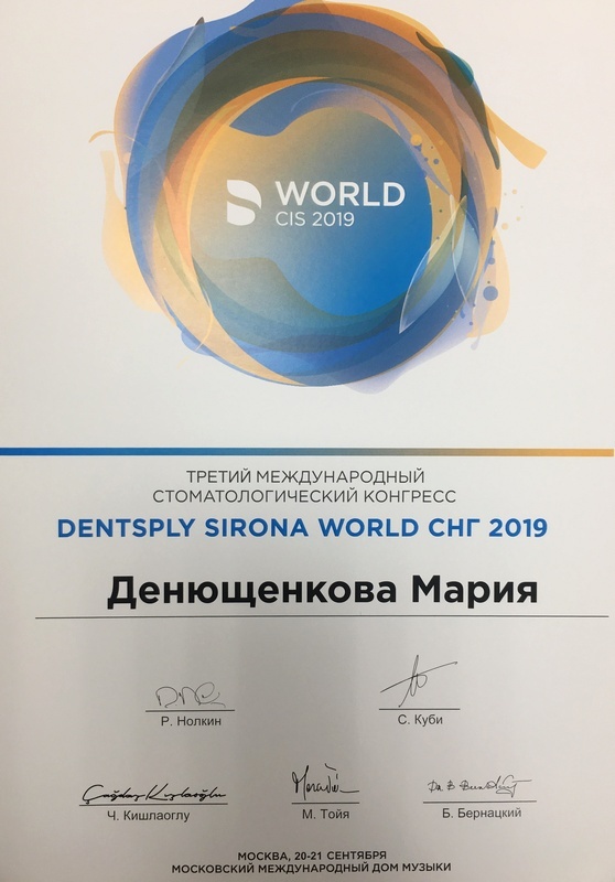 • 2019г. — Третий Международный Стоматологический Конгресс Dentsply Sirona World CHГ 2019