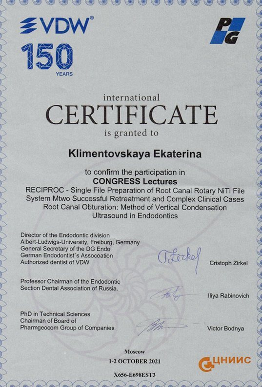 2012 г. — Участие в международном стоматологическом конгрессе «VIII International Congress of VDW Endodontic Synergy GmbH»