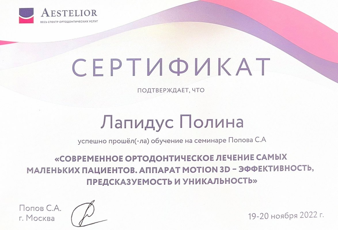 - 2022г. — «Аппарат motion 3D-эффективность, предсказуемость, уникальность. Современное ортодонтическое лечение детей» Попов