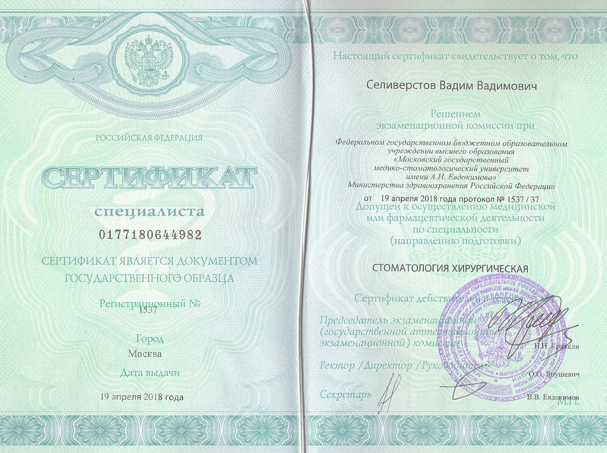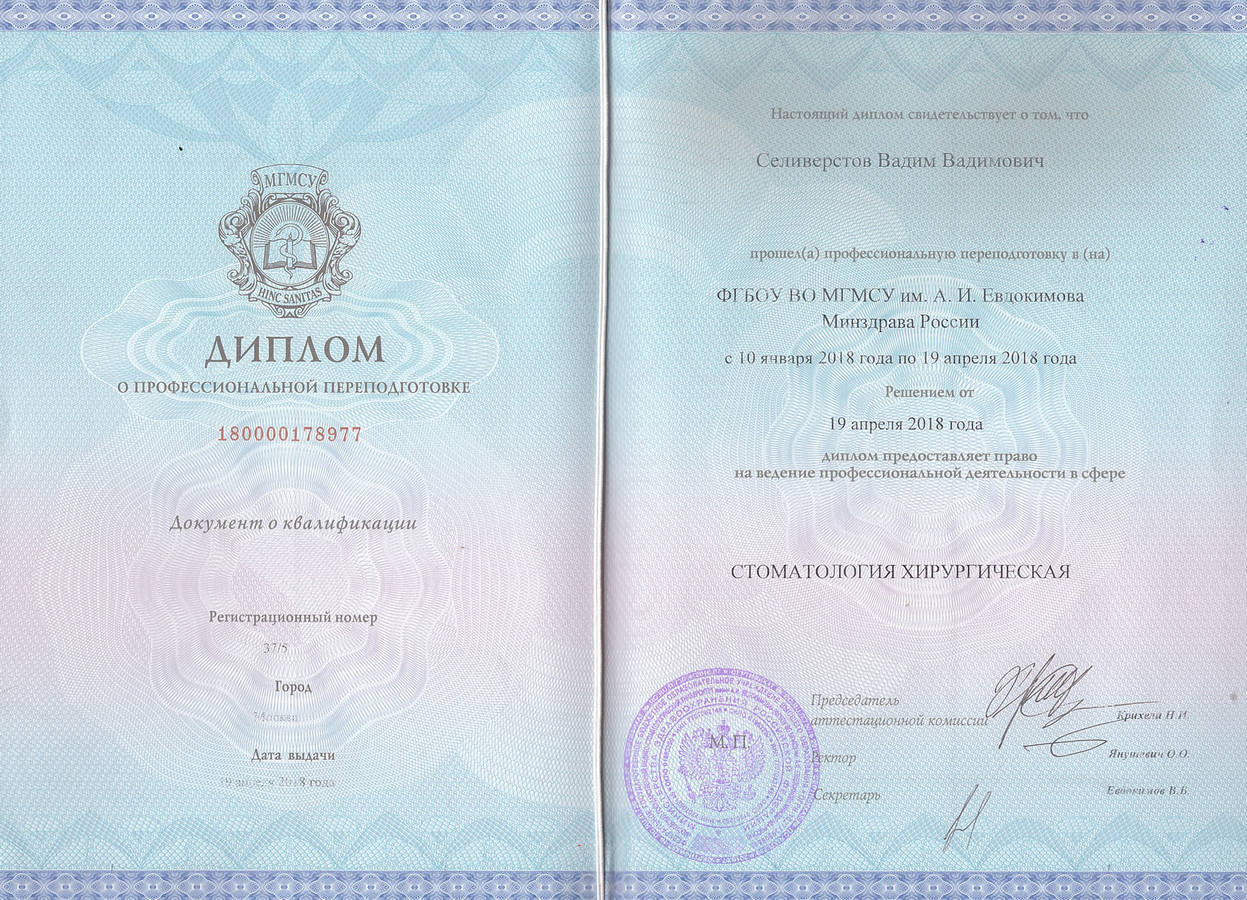2018г. — Циклы переподготовки, Московский государственный медико- стоматологический университет Евдокимова (стоматология хирургическая)