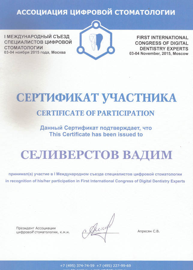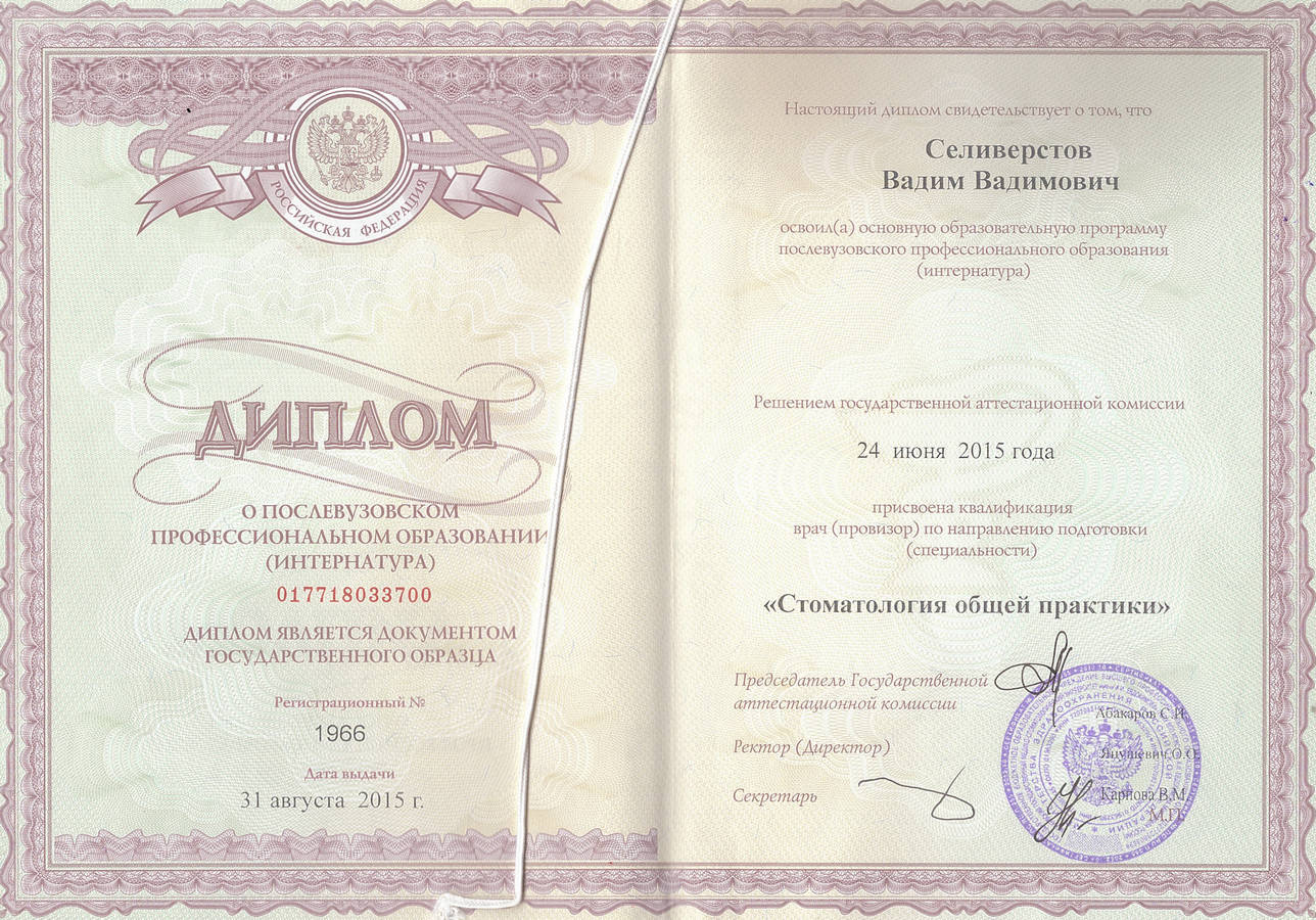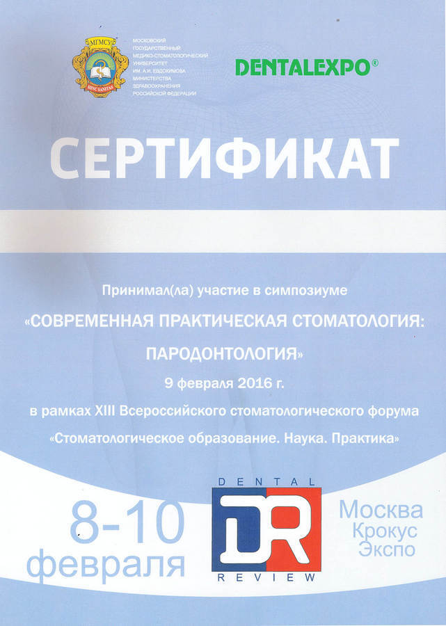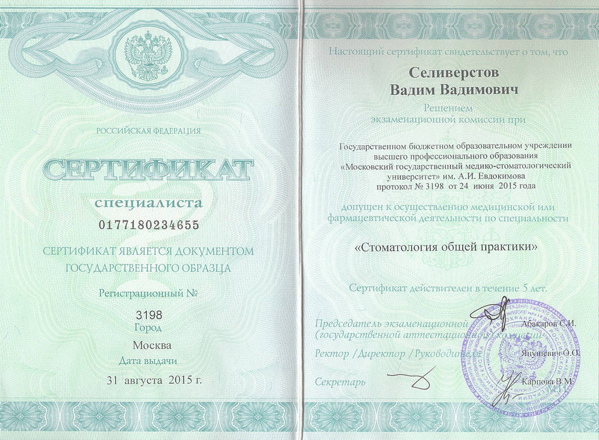 2015г. — Интернатура, Московский государственный медико- стоматологический университет Евдокимова (стоматология общей практики)