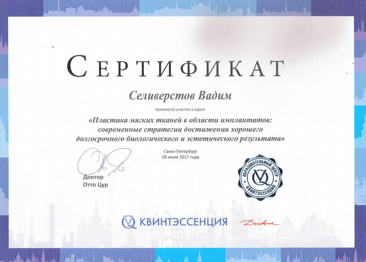 2017 г. — «Пластика мягких тканей в области имплантатов: современные стратегии достижения хорошего долгосрочного биологического и эстетического результата» Квинтэссенция доктур