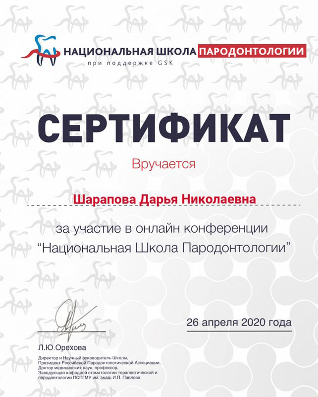 2020г. — онлайн конференция: «Национальная школа пародонтологии»