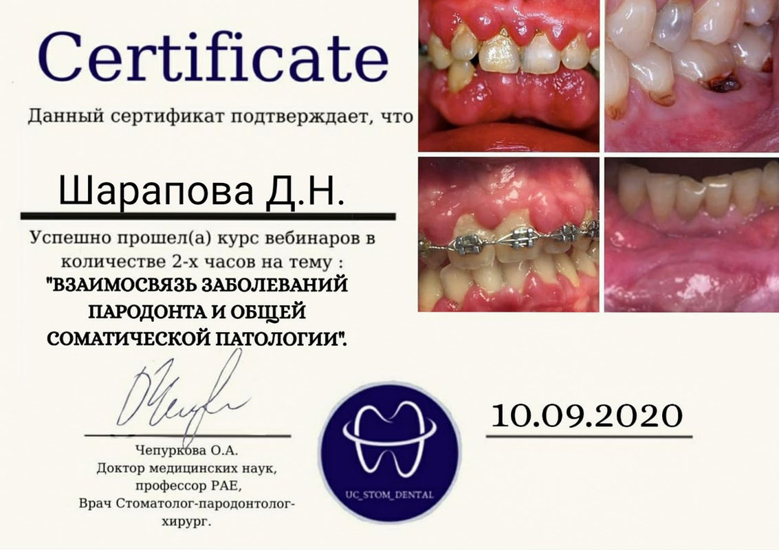 2020г. — «Взаимосвязь заболеваний пародонта и общей соматической патологии»