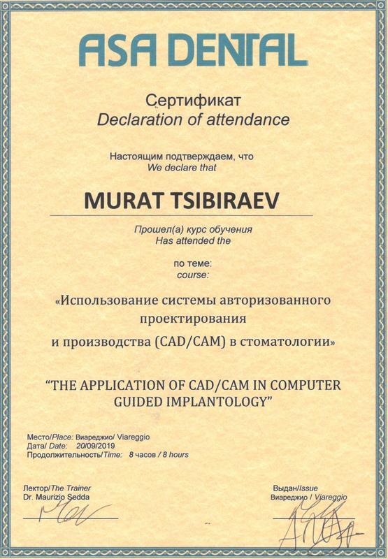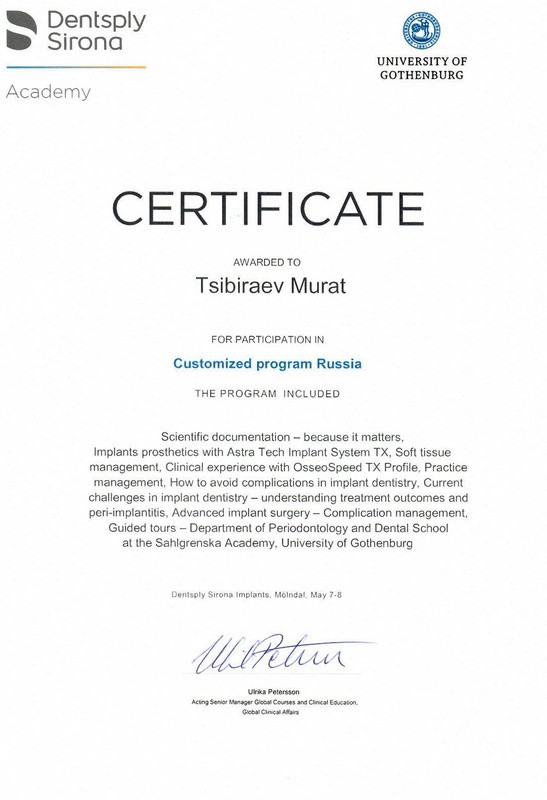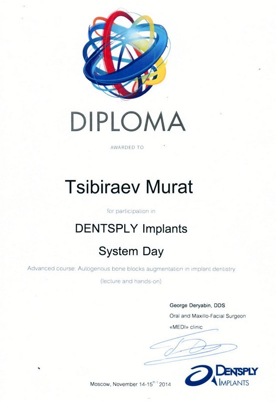 • 2013г. – Astra Tech Day «for participation in Advanced Educational Prosthodontics Program ASTRA TECH Implant System Day»