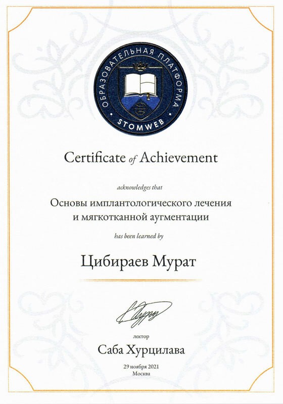 • 2021г. – STOMWEB. «Основы имплантологического лечения и мягкотканной аугментации». Москва