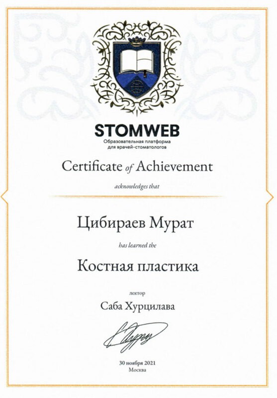 • 2021г. – STOMWEB. «Костная пластика». Москва