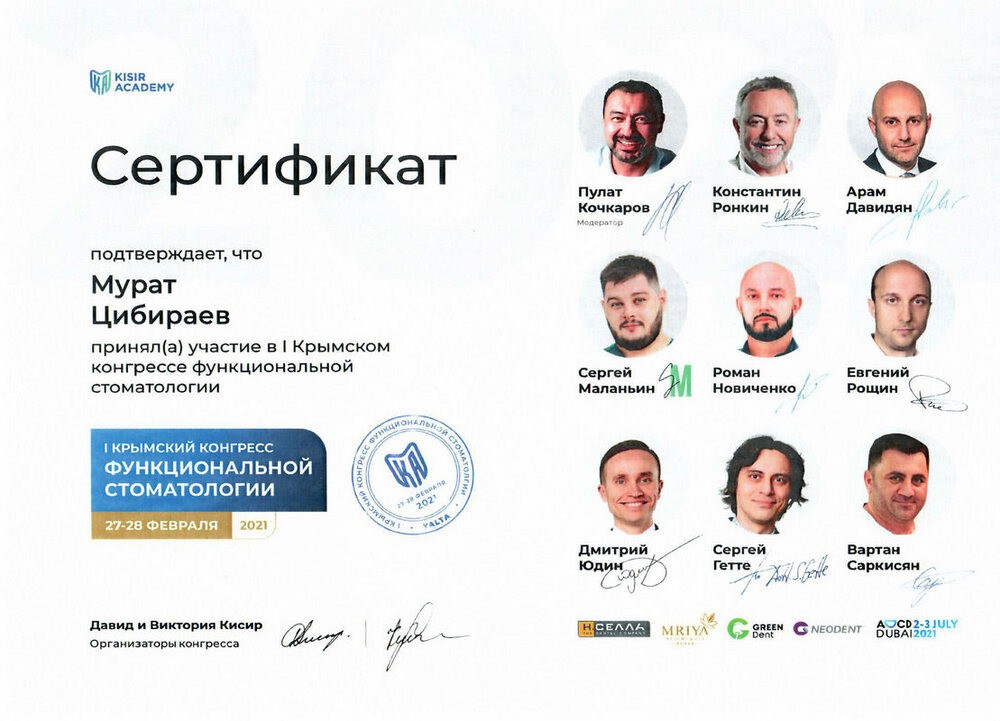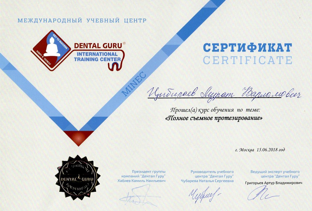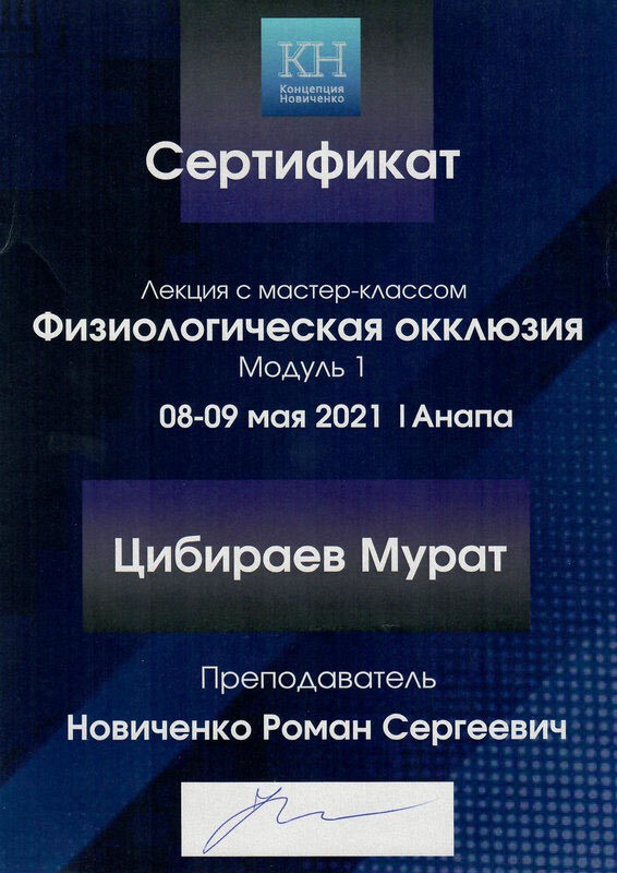 • 2020г. – Сертификат по специальности «Стоматология ортопедическая»