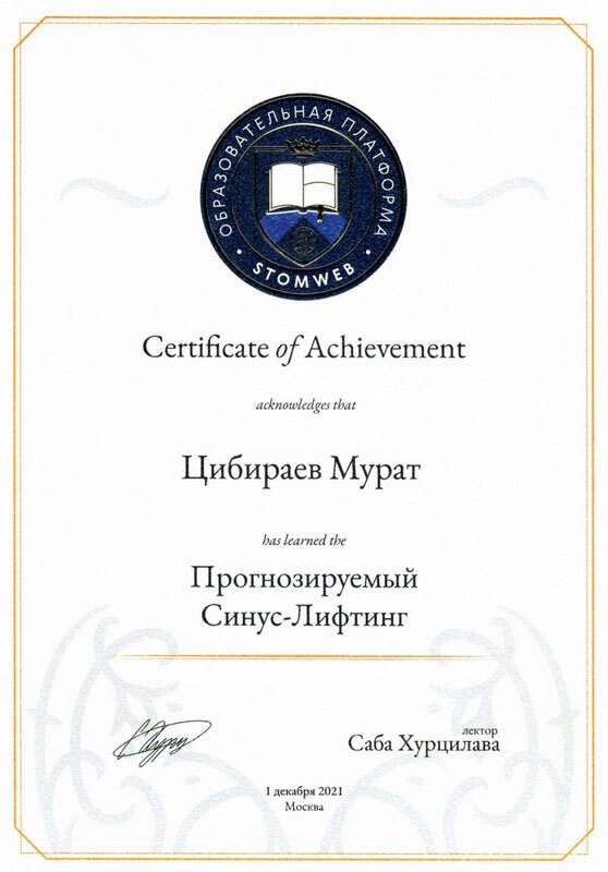 • 2021г. – STOMWEB. «Прогнозируемый Синус-лифтинг». Москва
