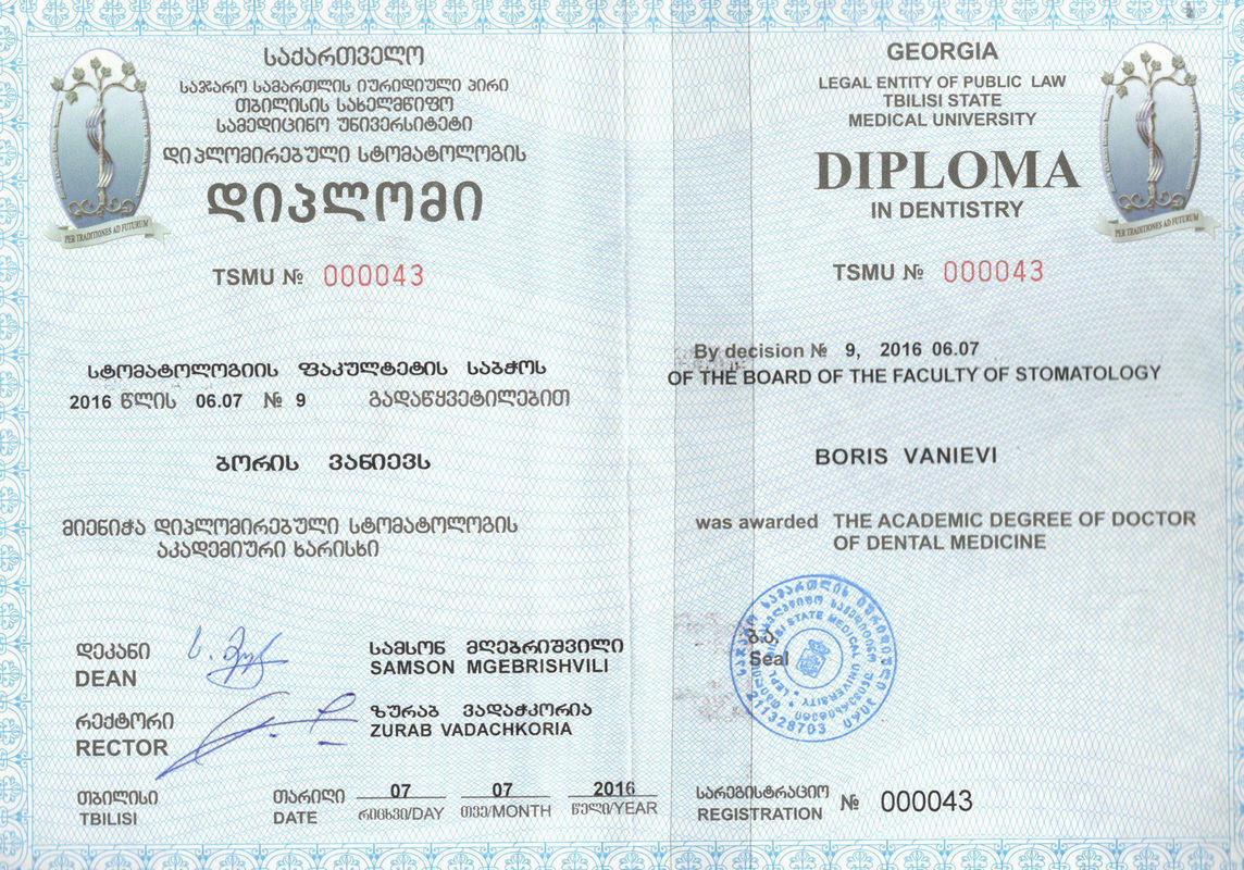 - Тбилисский государственный медицинский университет.2016Стоматология. Базовое образование2016