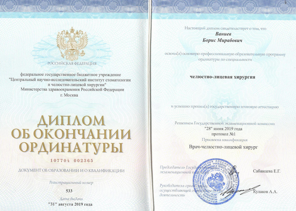 - Тбилисский государственный медицинский университет.2019Челюстно-лицевая хирургия. Ординатура2019