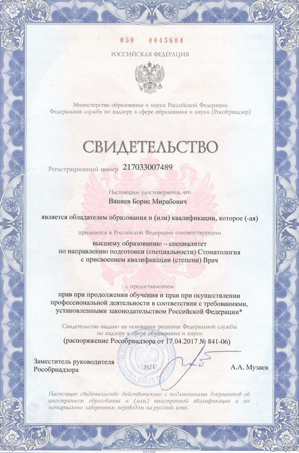 Врач стоматолог-хирург-имплантолог